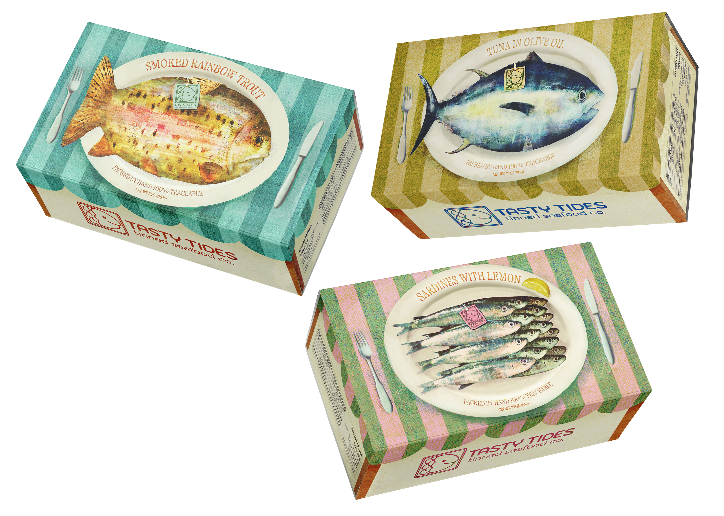 Conceptual Tinned Fish Brand “Tasty Tides”Logo, brand & packaging design View fullsize View fullsize View fullsize View fullsize View fullsize View fullsize